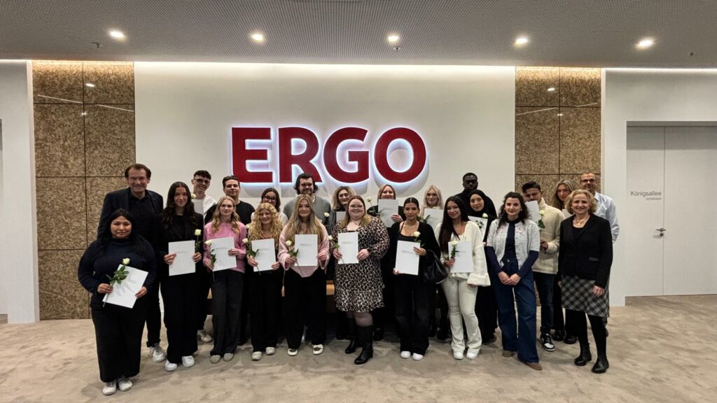 Home » Berufsschulabschluss – ERGO-Klasse feiert im Rheinischen Keller Berufsschulabschluss – ERGO-Klasse feiert im Rheinischen Keller Am Freitag, den 28.11.2025 erhielten die Schülerinnen und Schüler der VPO24 aus dem Bildungsgang der Kaufleute für Versicherungen und Finanzanlagen ihre Abschlusszeugnisse. Zwei Tage nach den schriftlichen IHK-Abschlussprüfungen endete für die jungen Auszubildenden auch die 2,5-jährige Berufsschulzeit am Leo-Statz-Berufskolleg. Zu diesem […]