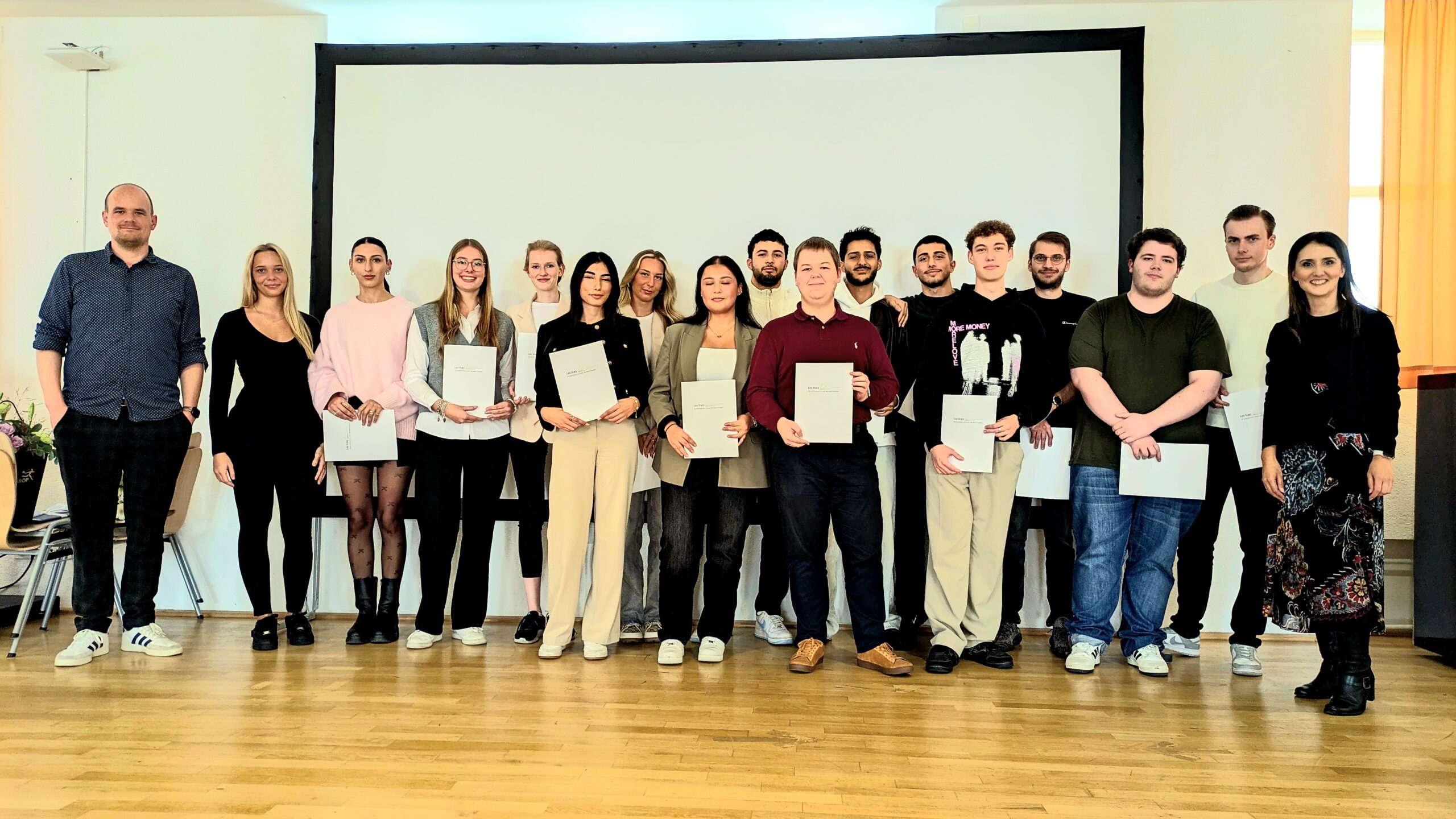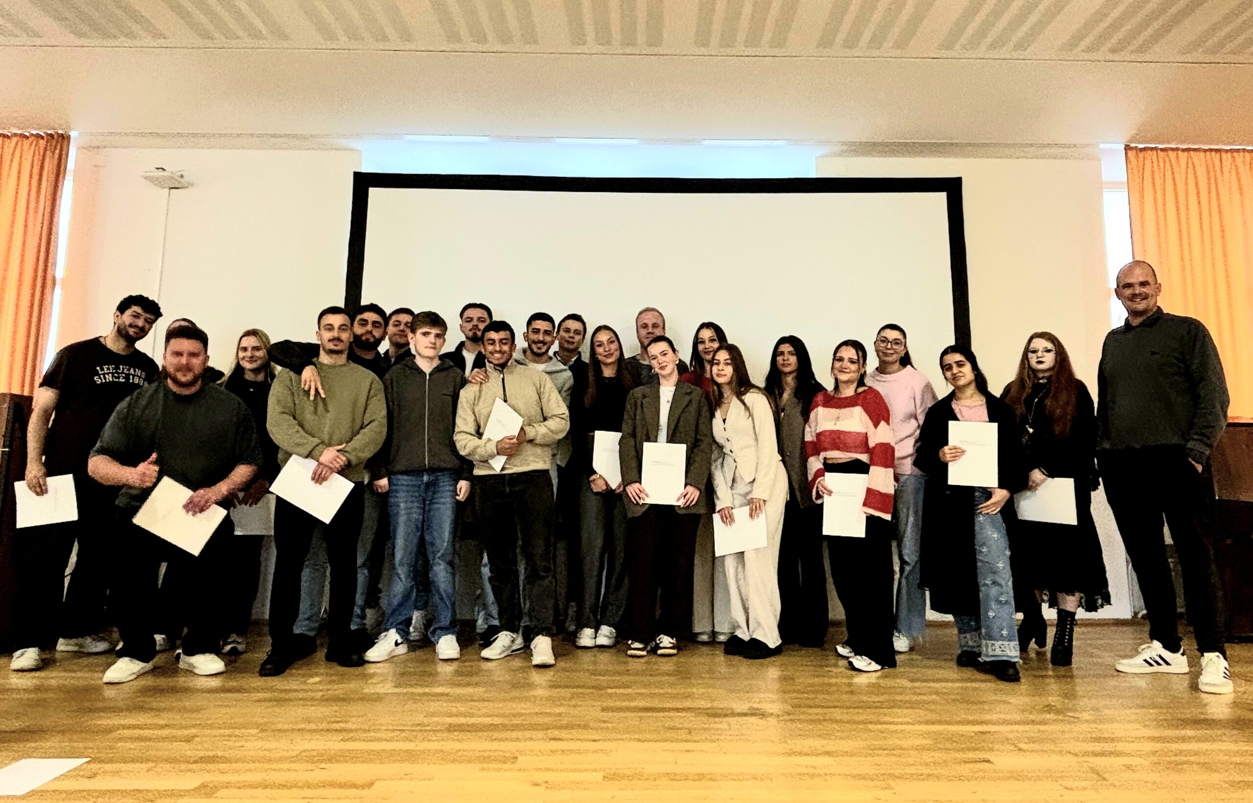 Den feierlichen Höhepunkt bildete die Übergabe der Abschlusszeugnisse. Mit Stolz nahmen die Absolventinnen und Absolventen ihre Zeugnisse entgegen, bevor abschließend Klassenfotos gemacht wurden, um diesen besonderen Moment festzuhalten.
