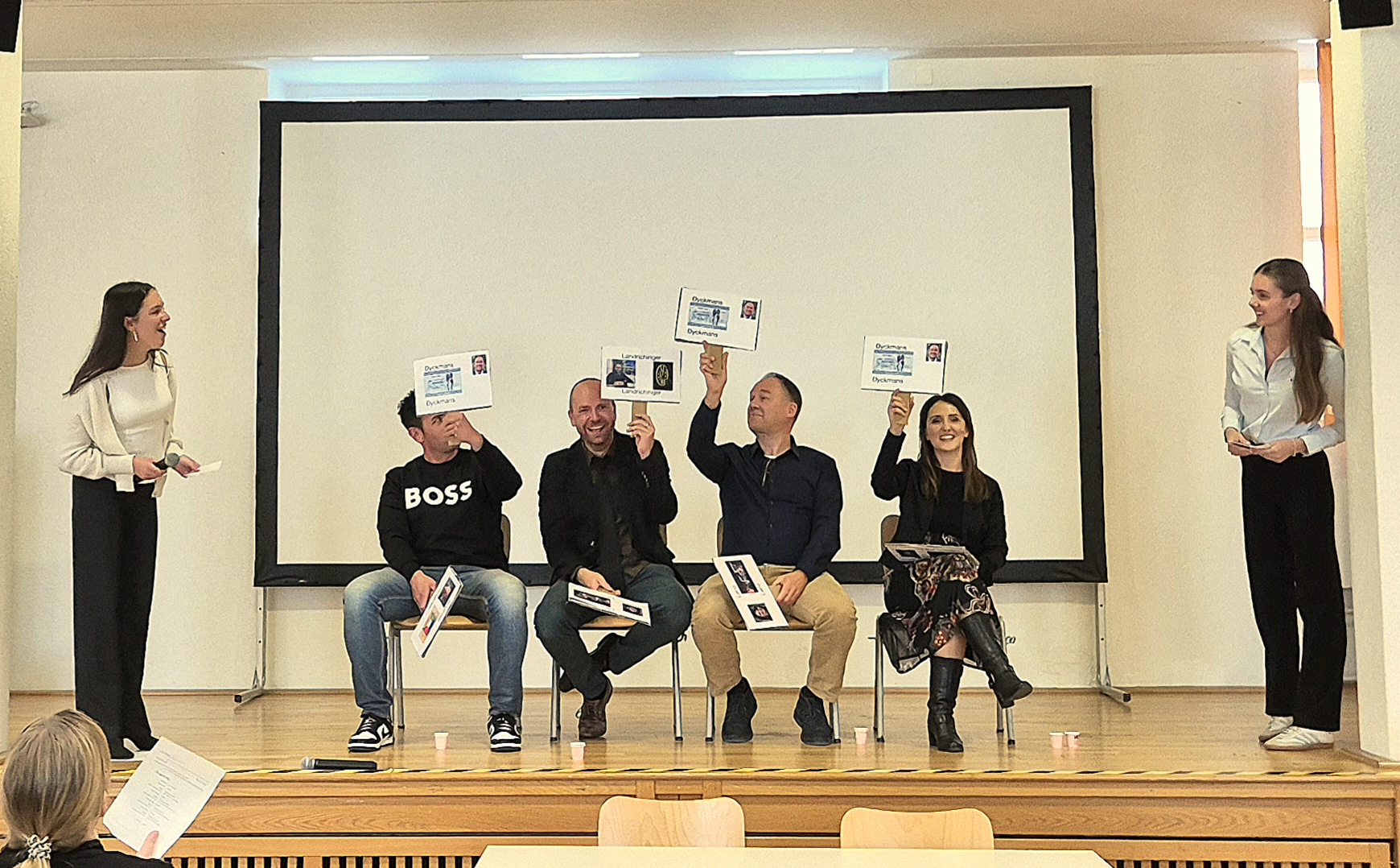 Im weiteren Verlauf der Veranstaltung präsentierten die Klassen verschiedene Beiträge, die den feierlichen Anlass mit Humor und Kreativität bereicherten. Besonders beliebt waren dabei lustige Spiele mit Lehrkräften sowie ein interaktives Kahoot-Quiz, das für gute Stimmung unter den Gästen sorgte.